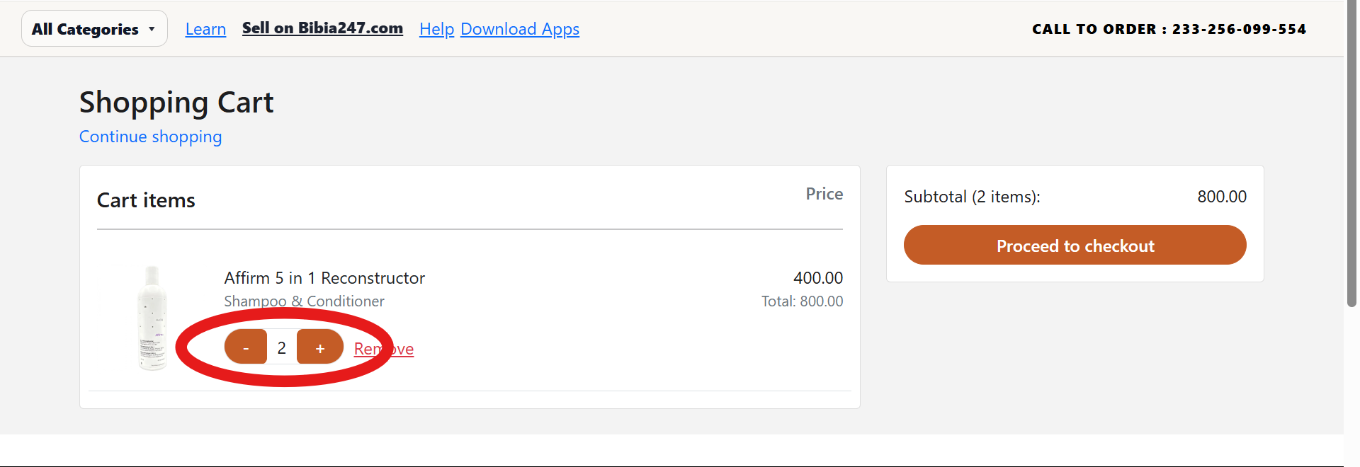 - Use the (+) or (-) buttons to increase or decrease quantity.